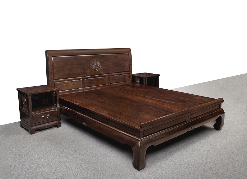 黑紫檀新中式大床配床頭柜